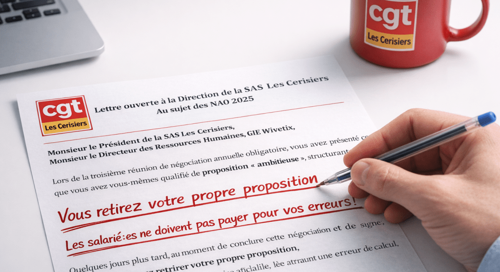 Ces données sont collectées par la CGT Les Cerisiers pour l’envoi d’informations syndicales et l’organisation d’actions. Base légale : consentement. Hébergement UE. Durée : 3 ans renouvelables. Droit d’accès/suppression à l’adresse : cgt.cerisiers@gmail.com. Désinscription à tout moment. Données non communiquées à l’employeur